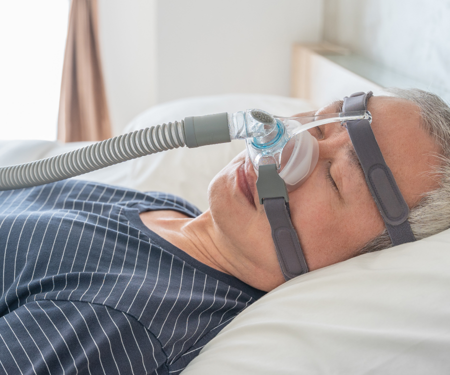 수면 중 마스크를 착용하여 지속적으로 공기를 불어넣어 기도를 열어주는 치료입니다.